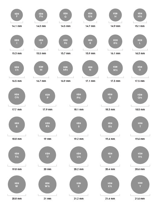 After finding this measurement, double-check you’ve measured it as tight as possible, then check our conversion chart below and find your corresponding ring size.